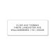 Simple adresse de retour poignée en bois tampon caoutchouc sur trois lignes dans une police sans serif moderne.