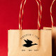 Ce simple tampon de ferme présente une silhouette charmante d'un canard en vol au centre. Le nom de la ferme familiale est en haut, en typographie moderne, et en bas, il y a un texte personnalisé. Le modèle indique : « local, frais, savoureux » mais il peut être facilement personnalisé en cliquant sur le bouton « Personnaliser ce modèle ».