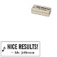 Ce design amusant de timbres en caoutchouc comprend le message motivant "NICE RESULTS!" et le nom d'un enseignant personnalisé. Il présente également une note musicale décorative. Il pourrait être utilisé par un enseignant ou un éducateur pour évaluer le travail des étudiants, pour reconnaître qu'un étudiant a fait un travail exceptionnel.