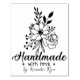 Ce tampon en caoutchouc "fait main" comporte un bouquet de fleurs avec un nom personnalisé.