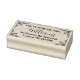 Ce timbre en bois est conçu pour un événement spécial, probablement un mariage ou un anniversaire, compte tenu des noms et de l'adresse, et l'inclusion de coins fleuris décoratifs.