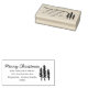 Calligraphie de Noël Joyeux Noël Ajoutez une touche festive à votre courrier de vacances avec ce timbre de Noël personnalisé avec un motif de pin. Customisez avec votre nom de famille et votre adresse pour rendre les cartes d'envoi, les lettres et les cadeaux encore plus spéciaux. Une façon pratique et élégante de répandre la joie des vacances.