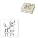 Timbre d'art en bois avec illustration de caniche snooty. Un poodle stylisé avec des poms de pom et un pout sur un arrière - plan rose poudreux.