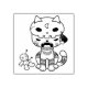 Un chat en colère avec des marques de tatouage, un collier d'os et un crâne sur la tête est assis à côté d'une poupée vaudou avec des épingles.