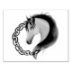 Un profil de portrait de cheval brun avec noeud celtique tribal travaille en cercle sur fond jaune