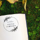 Feuille Chic Script Ex Libris Nom Personnalisé Timbre En Bois. Avec des feuilles dessinés à la main placés au-dessus d'une mince bordure circulaire, "ex libris" apparaît dans un script élégant et votre nom personnalisé dans un serif propre.