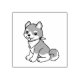 Illustration en niveaux de gris d'un chien assis shiba inu avec un sourire joyeux, langue dehors. Un simple mouchoir est attaché autour du cou.