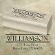 Un design personnalisé de timbre en caoutchouc avec deux règles mettant en évidence votre nom au-dessus du texte de votre adresse de retour.