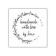 Un tampon pour vos produits faits main, art ou artisanat. Couronne fantaisiste de cœurs de lavande avec une police manuscrite.