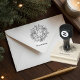 Add a timeless finishing touch to your holiday gifts, mail, and homemade goodies with this personalized Christmas wreath rubber stamp. The classic line-art design features a detailed winter wreath adorned with festive ornaments and a bow, paired with your custom family name for a meaningful signature.