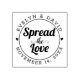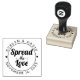 Étalez la citation d'amour et les coeurs mariage tampon mariage bois timbre. Il présente vos noms et la date du mariage en texte courbe, la citation d'amour "Étaler l'Amour" en typographie audacieuse et est accentué de deux coeurs.