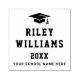 Timbre en caoutchouc pour la graduation avec une casquette de fin d'études avec le nom du diplômé ci-dessous dans une police de style sportif collégial. Année de classe personnalisable et nom de l'école.