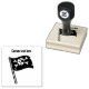Illustration fantaisiste en noir et blanc d'un drapeau de pirate agitant fièrement. Le drapeau est orné d'un dessin classique du crâne et des os croisés avec un oeil, symbolisant l'esprit aventureux et rebelle de la tradition pirate. Ce timbre-drapeau de pirate ludique et emblématique est parfait pour ajouter une touche de plaisir nautique à tout projet.