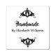 Vous pouvez personnaliser le texte d'affichage. On peut y lire : "Fait main". Le timbre d'entreprise comporte une deuxième ligne pour votre nom ou votre entreprise.