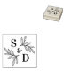 Élégant timbre en caoutchouc monogramme de mariage avec les initiales monogrammes de couple et la verdure.