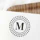 Élégant tampon monogramme en caoutchouc avec votre monogramme initial à l'intérieur d'une bordure de points radiaux.
