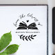 This elegant custom library rubber stamp features an illustration of an opened book with a tiny heart between the pages. On the top is your custom name in elegant typography, closed by an arch made of text ´from the library of´´ in vintage handwritten calligraphy script. Below, closing a round frame is a botanical branch. Create your own book stamper by clicking on the ´´Personalize´´ button!