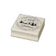 Cet élégant timbre en caoutchouc "Joyeux Noël" dispose d'une forêt avec nom et adresse de famille personnalisés.