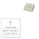 Élégant timbre en caoutchouc d'adresse de retour avec une croix chrétienne simple et mince et votre nom et adresse de retour.