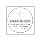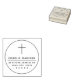 Timbre d'adresse de retour en caoutchouc avec une croix chrétienne élégante et fine et votre nom et adresse de retour à l'intérieur d'une mince bordure ronde.