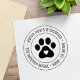 Empreinte de pattes d'animaux entourée de nom et d'adresse. Veuillez noter que vous devrez peut-être ajuster les informations que vous entrez en ajoutant ou en supprimant des caractères pour aligner correctement le texte.