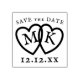 Deux coeurs liés - ajoutez vos initiales, la date du mariage et, si nécessaire, changez le texte de Enregistrer la date en mariage ou autre. Vraiment pratique à utiliser à votre mariage do-it-yourself sur les enveloppes, etc. Cette conception fonctionne le mieux sur le timbre carré