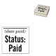 Cette conception simple et en caoutchouc comprend les messages "Statut : Payé" et une ligne où une date de paiement peut être écrite. On pourrait peut-être l'utiliser pour indiquer qu'une facture ou une facture a été entièrement payée.