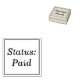 Cette estampille en caoutchouc présente le message "Statut : Payé". Il pourrait être utilisé pour marquer une facture ou une facture comme ayant été payée en entier.