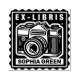 Un timbre Ex Libris avec un motif vintage reflex. Modifiez le nom pour personnaliser.