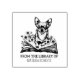 Ce tampon en caoutchouc « De la bibliothèque de » représente un chihuahua avec un livre fleuri et un nom personnalisé.