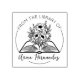 Ce tampon en caoutchouc "De la bibliothèque de" comporte un livre, des fleurs et un nom personnalisé.