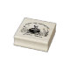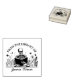 Ce tampon en caoutchouc "De la bibliothèque de" comporte un livre, des fleurs un crâne lisant et un nom personnalisé.