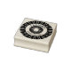 Un design en caoutchouc Ex Libris rond avec une bordure de soleil/starburst multi-rayons et centre avec un motif étoile 12 pointes. Modifiez le nom pour personnaliser.