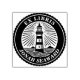Un design élégant Ex Libris avec un phare dans une mer rocheuse ondulée. Cercle extérieur noir avec un bord incisé, Texte en blanc. Modifiez le nom pour customiser.