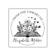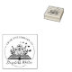 Ce tampon en caoutchouc "De la bibliothèque de" comporte un livre, des fleurs et un nom personnalisé.