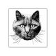 Timbre fait avec un stylo et un dessin à l'encre du visage d'un chat.