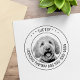 Photo d'animal de compagnie personnalisable et timbre texte. Veuillez noter que vous devrez peut-être ajuster les informations en ajoutant ou en supprimant certains caractères pour aligner le texte correctement.