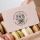 Elevate your bakery branding with this Elegant Hand Drawn Floral Cupcake Bakery Business Rubber Stamp, designed to create a customized crest-style logo for your bakery. The stamp features our signature hand-drawn floral cupcake created to look like a french style bakery storefront illustration, with customizable text along the top and bottom arches, allowing you to add your bakery name, tagline, or slogan for a cohesive, professional look. Perfect for adding a personal, artisanal touch to bakery packaging, boxes, pastry bags, gift wrap, thank-you notes, and product labels, this rubber stamp is ideal for cupcake shops, patisseries, cake designers, pastry chefs, cafés, boutique bakeries, and home bakers. Made for frequent use, this stamp is a versatile branding tool that helps create a polished and memorable impression on every order, elevating your bakery business with a charming, boutique feel. Design and hand-drawn illustration by © Moodthology Papery