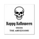 Timbre d'Halloween avec un crâne et le texte : "Happy Halloween" dans une police de style gothique avec votre nom ou autre texte personnalisé ci-dessous.