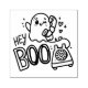 Hey Boo - Ghost with Love caoutchouc timbre Un conversation fantôme de dessin animé dans un téléphone rotatif rose, entouré de coeurs et Halloween whimsy. Avec de grands yeux et une pose ludique, le fantôme délivre l'affectueuse phrase "Hey Boo" en caractères gras noirs et roses. Le design allie le charme éffrayant à la douce sensation, ce qui en fait un parfait mélange d'obscurité et de chaleur.
