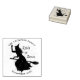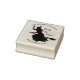 Tampon en caoutchouc personnalisé pour Halloween. Illustration vectorielle avec silhouette grunge de sorcière volant sur un balai. Texte "Trick or Treat". Ajoutez votre texte.