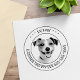Photo d'animal de compagnie personnalisable et timbre texte. Veuillez noter que vous devrez peut-être ajuster les informations en ajoutant ou en supprimant certains caractères pour aligner le texte correctement.