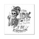 Design coloré et dynamique, avec un squelette féminin sirotant du café. Le texte coloré dit : "Je dis beaucoup IDK mais croyez-moi, je suis au courant". Ce design est disponible sur une grande variété de produits.