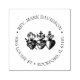 Il s'agit d'un magnifique timbre-nom personnalisé avec les trois images symboliques religieuses du Sacré-Coeur de Jésus, Coeur Immaculé de Marie, et Coeur Chaste de Saint-Joseph.
