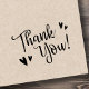 Tampon en caoutchouc avec le texte "merci" dans une jolie police de script entourée de coeurs mignons. Idéal pour le scrapbooking, la fabrication de cartes, la fabrication et d'autres métiers