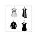 Le timbre en caoutchouc présente une rangée d'illustrations originales de jolies robes sur les cintres.