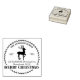 Ce timbre en caoutchouc "Joyeux Noël" comporte un cadre circulaire avec un cerf, un nom de famille et une adresse personnalisés.