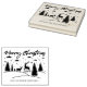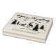 Ce timbre en caoutchouc "Joyeux Noël" présente des cerfs, des arbres, un message et un nom de famille personnalisé.