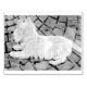 Automne de saison Automne Ouest Highland Terrier blanc posé sur un patio en pierre avec feuilles tombés. Westie chien regardant au-dessus d'un buisson fleuri. Isobel. Copyright © 2025 Angi Laframboise. Tous droits réservés. Le chien d'art brasse des cadeaux pour les amoureux de les chiens.