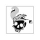 Une escalade d'écureuil volant gris au-dessus d'un crâne noir incliné. Ce rongeur à l'allure moche a ses griffes tendues vers une glande. La bouche est surtout remplie de dents pointues.